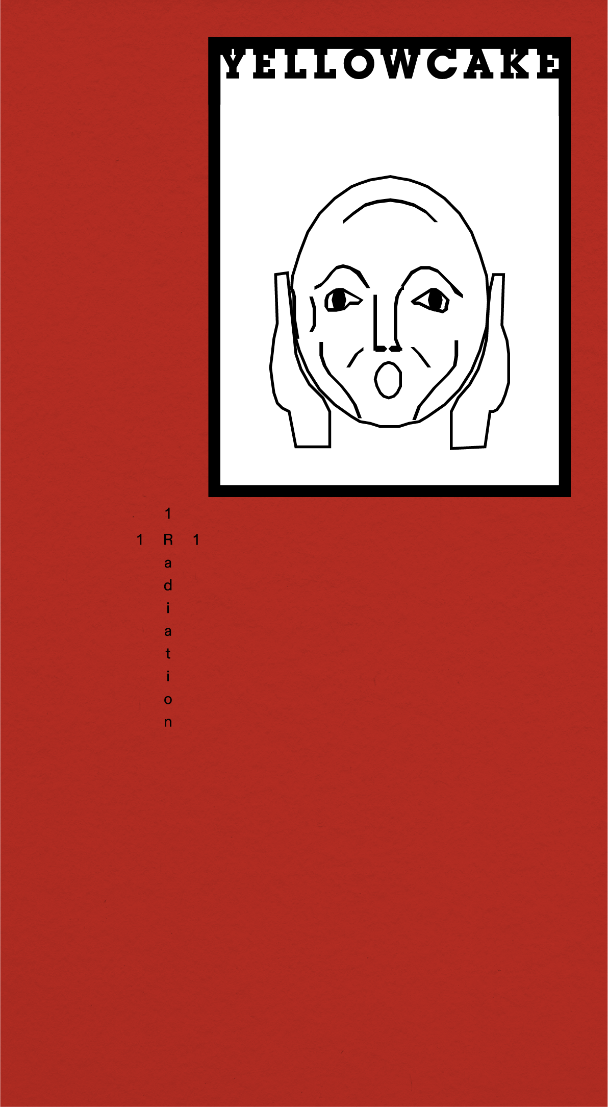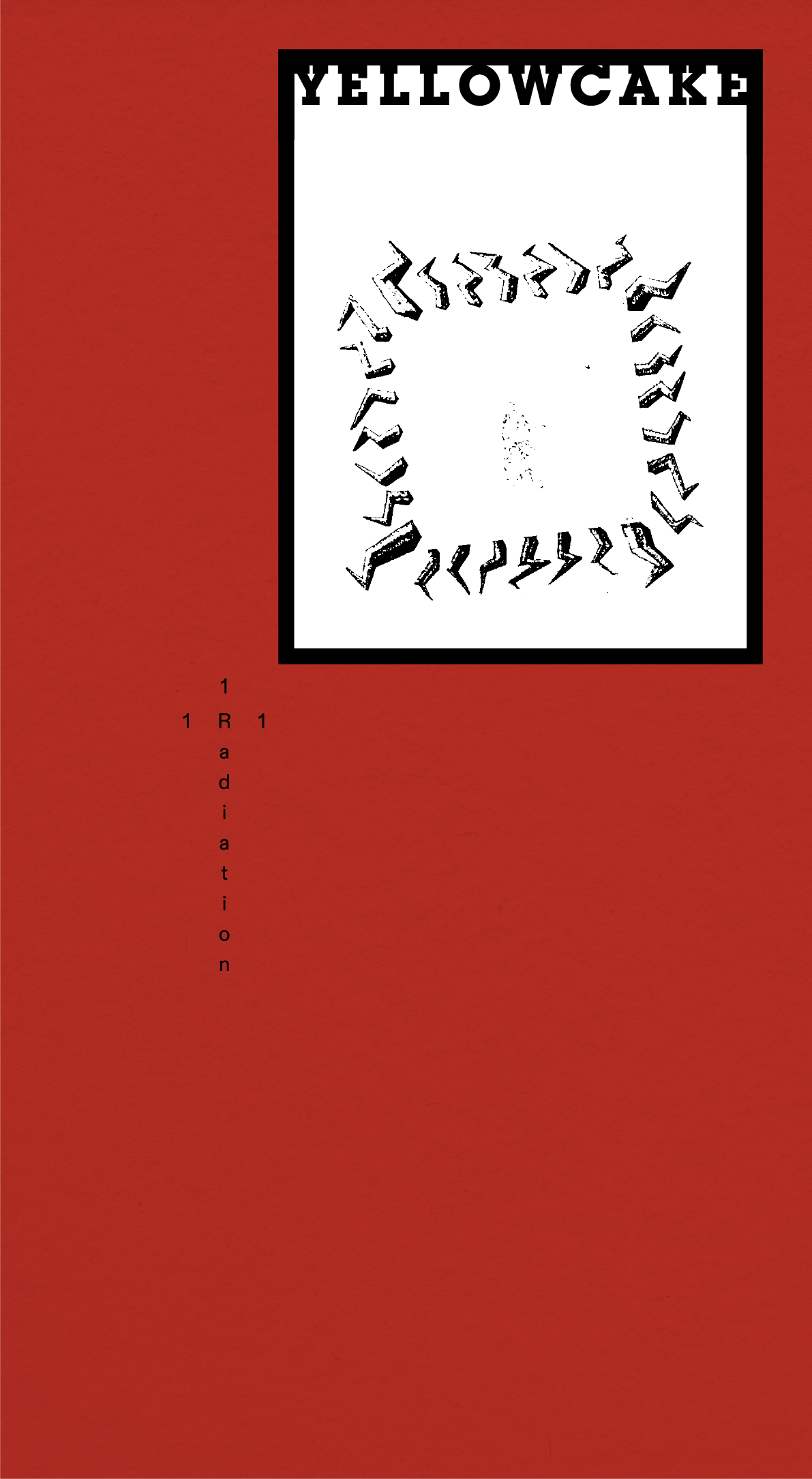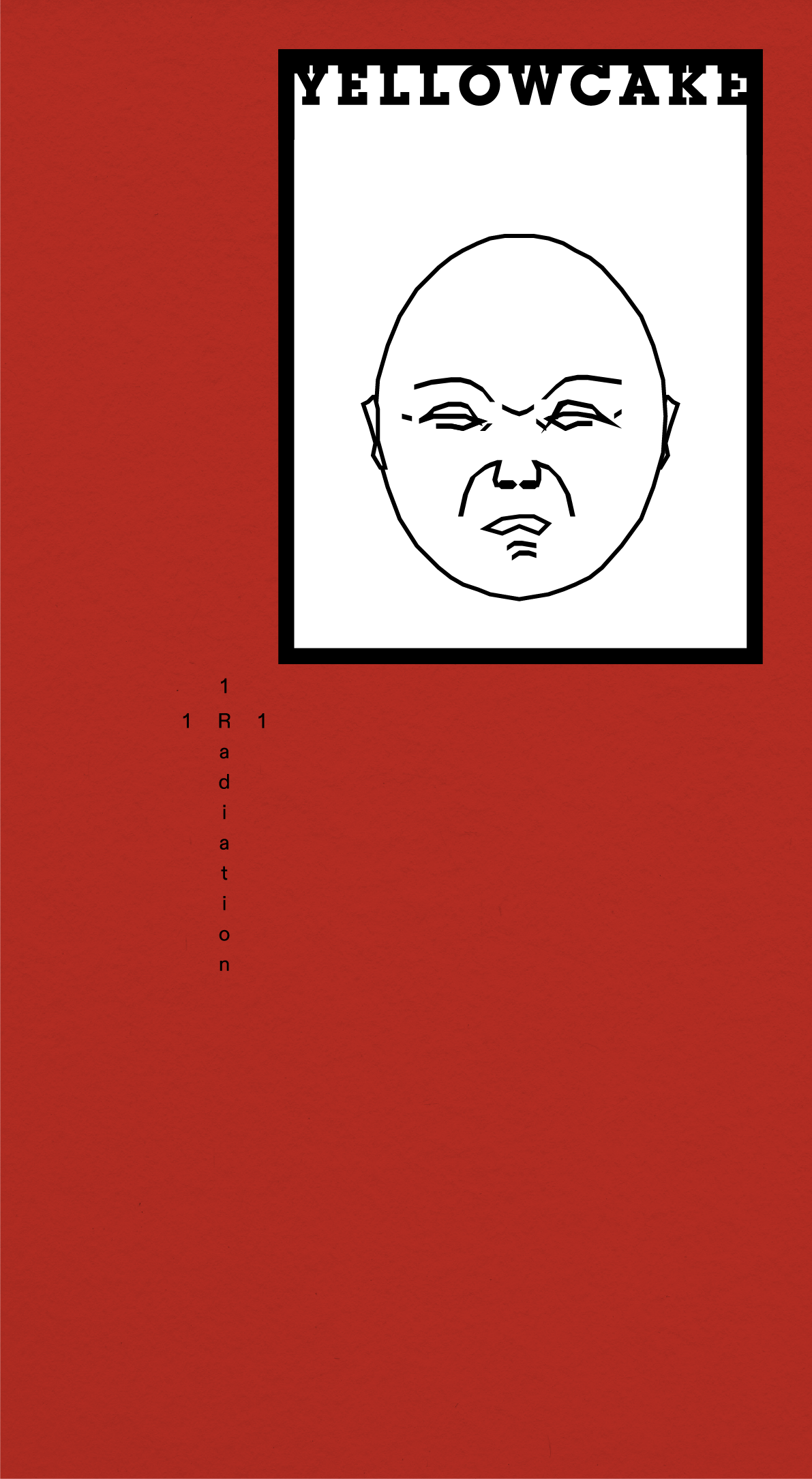 Yellowcake's design for Issue 1: Radiation draws inspiration from vintage radiation warning symbols. This is evident in the first issue's deep red cover and the slab serif typeface used in the logo and logotype. The magazine format is inspired by the "Manual of Civil Defence: Vol 1 Nuclear Weapons," a 1956 Civil Defence Corps training pamphlet. The cover's main design element is a simple white box, acting as a window into the theme of each release. This window will be tipped in on a different coloured cardstock for every issue. For this debut, three alternate covers are available, each featuring a unique radiation warning symbol concept, from recognisable facial emotions to harsh spike monuments.